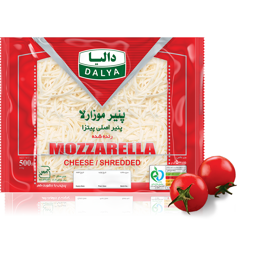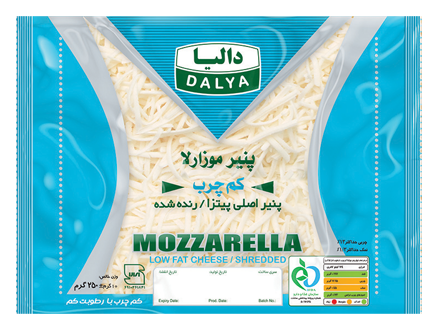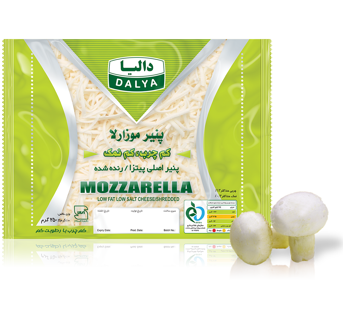 پنیر موزارلای كم رطوبت (low moisture mozzarella cheese) از سری پنیر های ایتالیایی با دلمه كش آمده (pasta filata) است . 90% تولید جهانی پنیر موزارلای كم رطوبت در پیتزا مصرف می شود به همین جهت به آن پنیر پیتزا (pizza cheese) نیز گفته می شود. پنیر موزارلا از شیر تازه پاستوریزه تولید می شود برای تولید پنیر موزارلا ابتدا كمی چربی شیر گرفته شده تا از چرب شدن بیش از حد پنیر جلو گیری شود سپس با كشت های لاكتیكی اسیدی می گردد . با افزودن مایه پنیر شیر منعقد شده و پس از برش و آّب گیری ، كشش لخته درآب داغ صورت می گیرد كه این عمل سبب ایجاد بافت لاستیكی ، بافت فیبری و خاصیت كش آمدن و ذوب در پنیر نهایی میشود. شرکت دالیا هم اکنون پنیر موزارلا را در انواع کم چرب و کمچرب کم نمک نیز تولید میکند و تنها دارندة نشان ایمنی و سلامت از سازمان غذا، وزارت بهداشت است