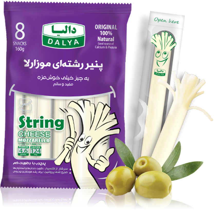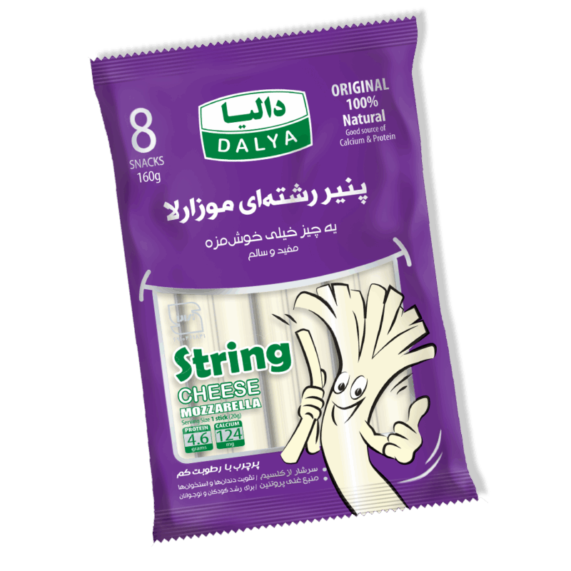 یک میان وعده پروتئینی و کم کالری، 100 % طبیـعی، بدون مواد نگهدارنده و سرشـار از کلسیـم است. هر یک پنیر رشته ایی معادل یک تخم مرغ پروتئین داشته و هر دو عدد آن معادل یک لیوان شیر کلسیم دارد. هر قطعه پنیر در بسته آسان بازشو قرار دارد که ضمن حفظ رطوبت و کیفیت پنیر جابجایی و مصرف بهداشتی آن را برای ورزشکاران، کودکان، نوجوانان و بانوان راحت میکند.
