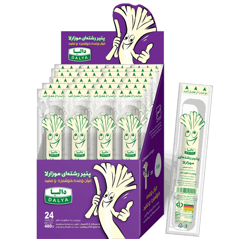 یک میان وعده مفید، سالم و خوشمزه ، بدون مواد نگهدارنده. هر یک پنیر رشته ایی به اندازه یک تخم مرغ پروتئین داشته و هر دو عدد آن به اندازه یک لیوان شیر کلسیم دارد. هر قطعه پنیر در بسته آسان بازشو قرار دارد که ضمن حفظ رفطوبت و کیفیت پنیر جابجایی و مصرف بهداشتی آن را در مدرسه، محل کار، ورزش، سفر و دورهمیها ممکن میسازد.